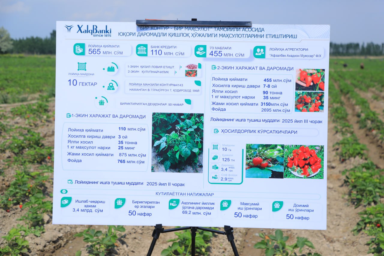 Бугун қулупнойзорда ҳаракат авжида. Пайкалдан териб олинган маҳсулотларни ҳам харидорлар бир жойдан сотиб олишяпти. Демак, “Бир контур – бир маҳсулот” тамойили ўзини оқлашда давом этмоқда.